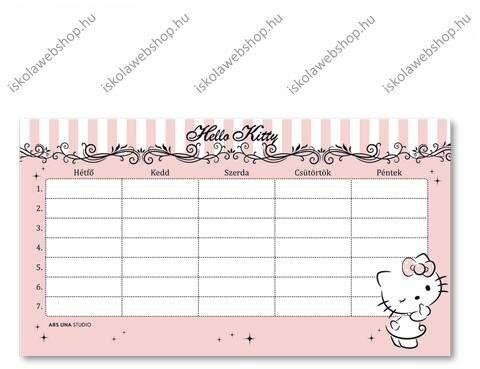 - HELLO KITTY KOLLEKCIÓ! - Kétoldalas, magyar nyelvű órarend A és B hét beosztással. - Az új méretű órarend kihajtható írószertartós tolltartóinkba is betehető. - 250 gr-os félfényes műnyomó papírra, 4 szín nyomással nyomott. - Méret:160x88 mm