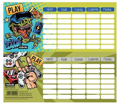 Nebulo Órarend egylapo, Gamer, 25 db/csomag, Nebulo